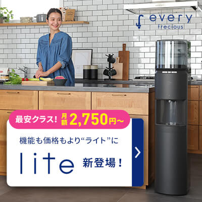 【申込殺到中】月額2,750円の新サーバー『lite』が人気!上野樹里さんがアンバサダーを務める「エブリィフレシャス」は、当サイト人気No.1の浄水型ウォーターサーバー。水道水を注ぐだけでおいしい水がいつでも楽しめます。おしゃれなサーバーデザインの他、業界トップクラスの機能性&浄水性能もポイント。月額2,750円~で使い放題の圧倒的なコスパも魅力で、さらにWEB限定で実質2ヶ月無料のお得なキャンペーン中♪ 新登場のBEAMS DESIGNプロデュース特別カラーも注目です!
